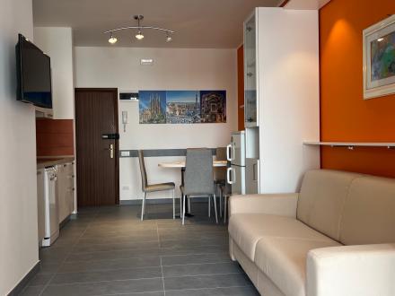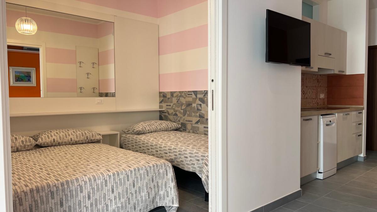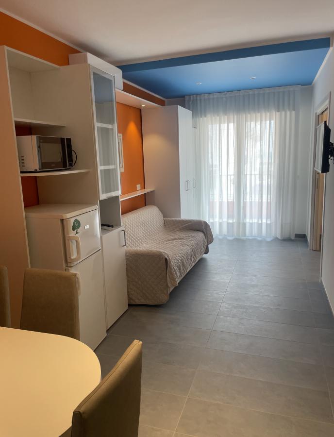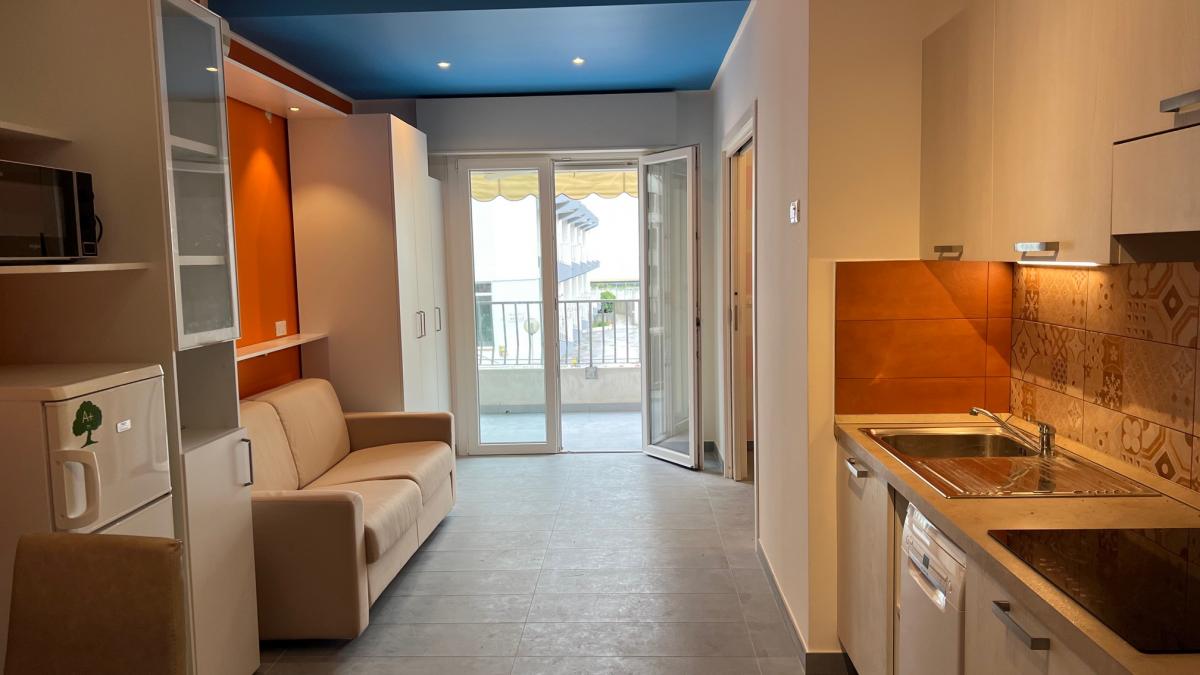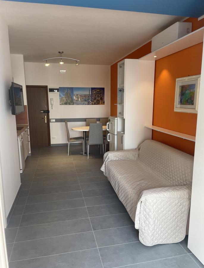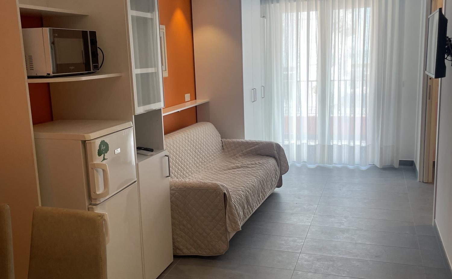 Jesolo Lido (VE)-Piazza Torino area-For sale in a condominium with swimming pool and condominium parking space approx. 30 meters from the sea, two-room apartment under renovation, consisting of living room with induction kitchenette, sofa bed for 2 people, bathroom of approx. 6 sqm - with 80x160 cm shower, double bedroom with 3 beds and terrace of approx. 10 sqm with direct sea view. For sale by natural person with 9% taxes second home R.C.E. 26,029.08.